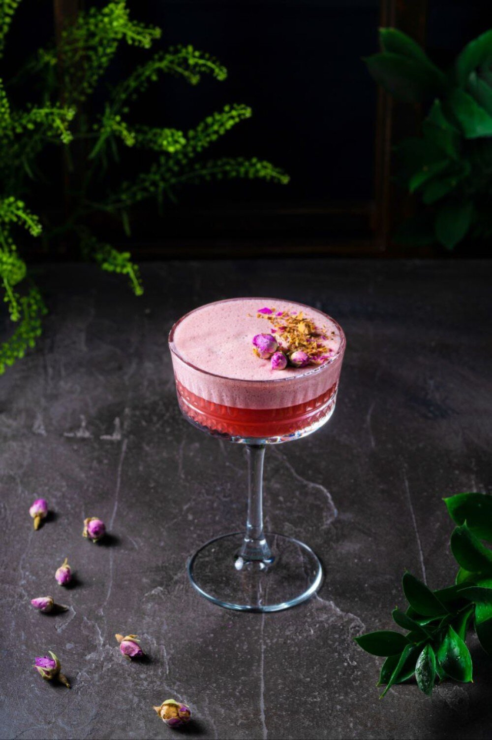 Джин, Сироп черная смородина, Пюре клубника, Лимонный фреш, Белок.