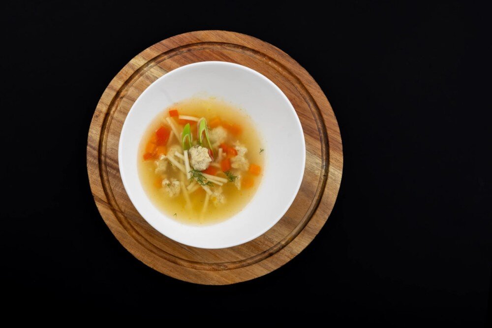 Куриные фрикадельки, лапша, болгарский перец, яйцо, лук, морковь